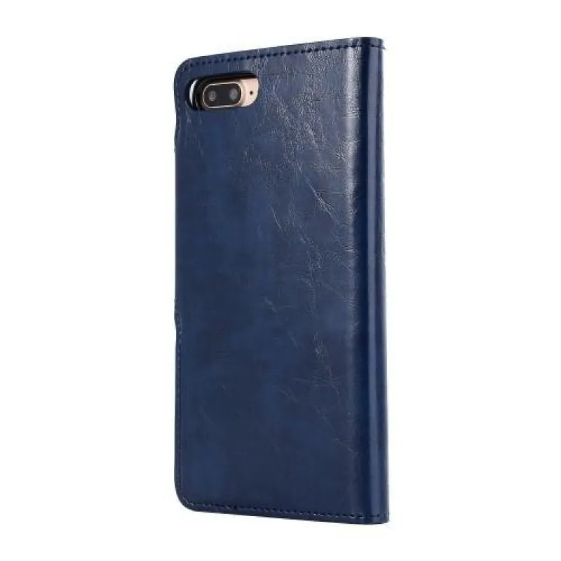 Stílusok PU bőrből készült összecsukható tok iPhone 7 Plus és 8 Plus készülékhez - sötétkék színben