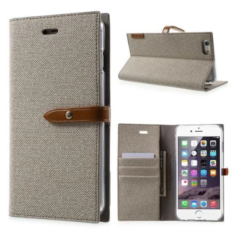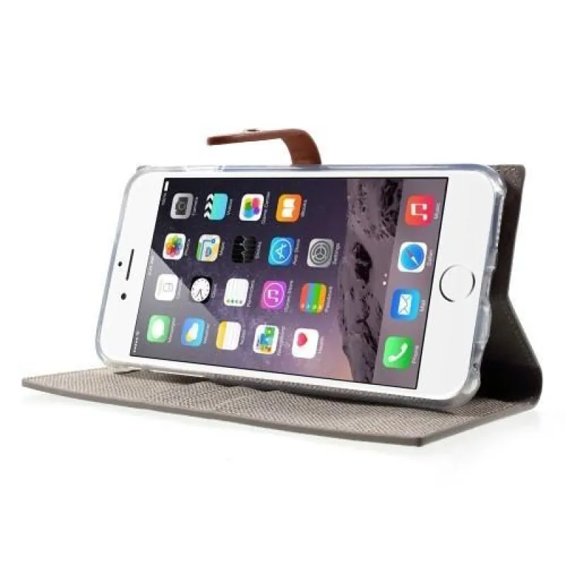 Stílusos PU bőr tok iPhone 6s Plus és 6 Plus készülékhez - khaki színű