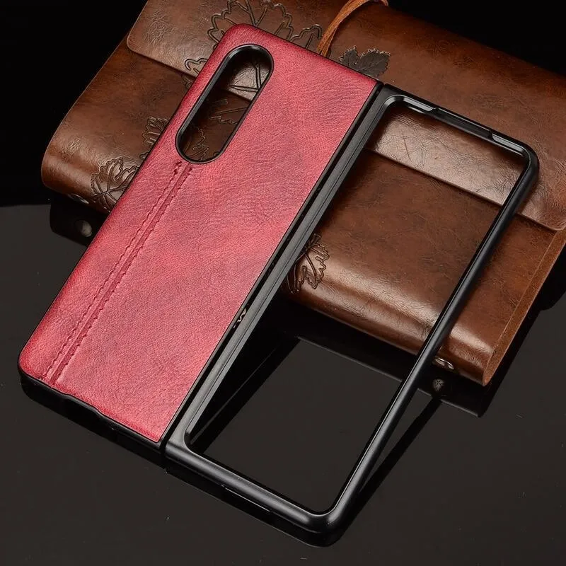 Stitchi műanyag tok PU bőrrel borított mobiltelefonra Samsung Galaxy Z Fold3 5G - piros