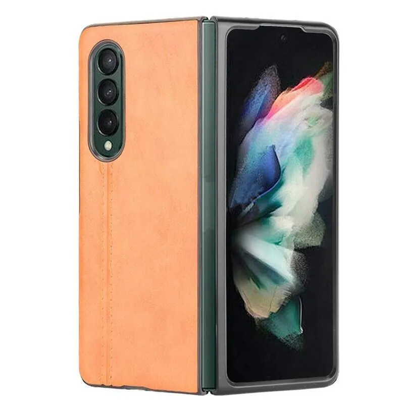 Stitchi műanyag tok PU bőrrel borított mobiltelefonra Samsung Galaxy Z Fold3 5G - sárga
