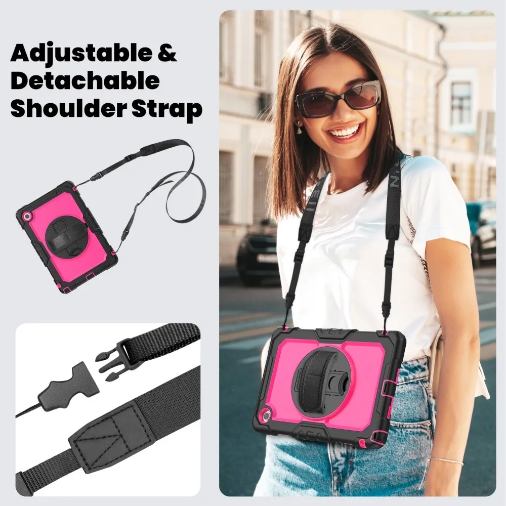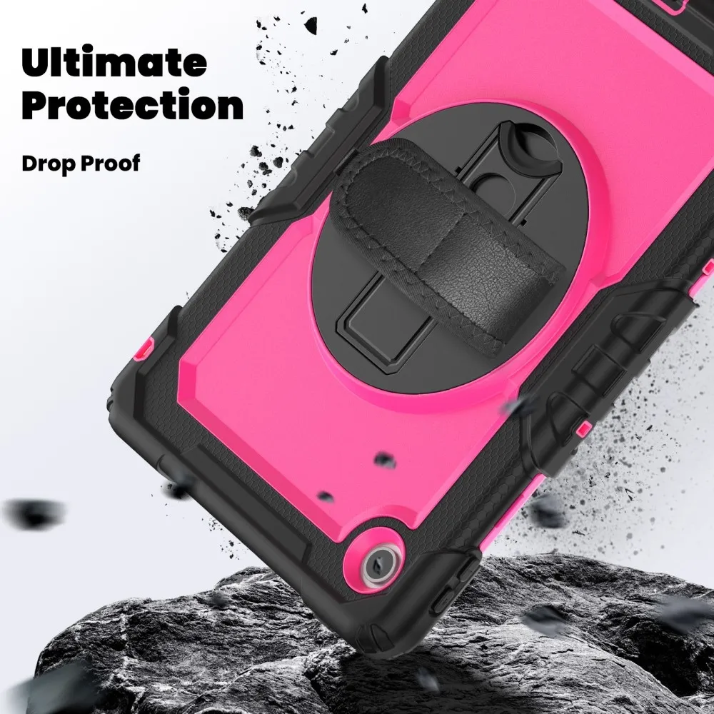 Strap Tartós borító kéztartóval és vállpánttal Lenovo Tab 10.1 (2025) - Fekete/rózsaszín