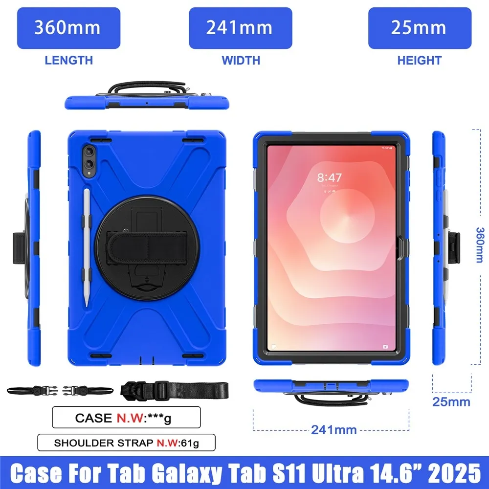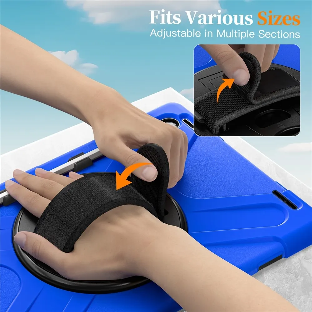 Kék tartós tokszíj kézi tartóval és vállpánttal Samsung Galaxy Tab S11 Ultra számára