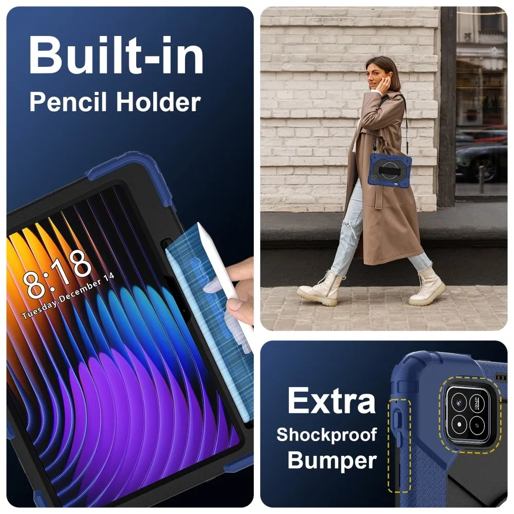 Sötétkék/fekete tartós pántos tok kéztartóval és vállpánttal Xiaomi Pad 7/7 Pro készülékhez