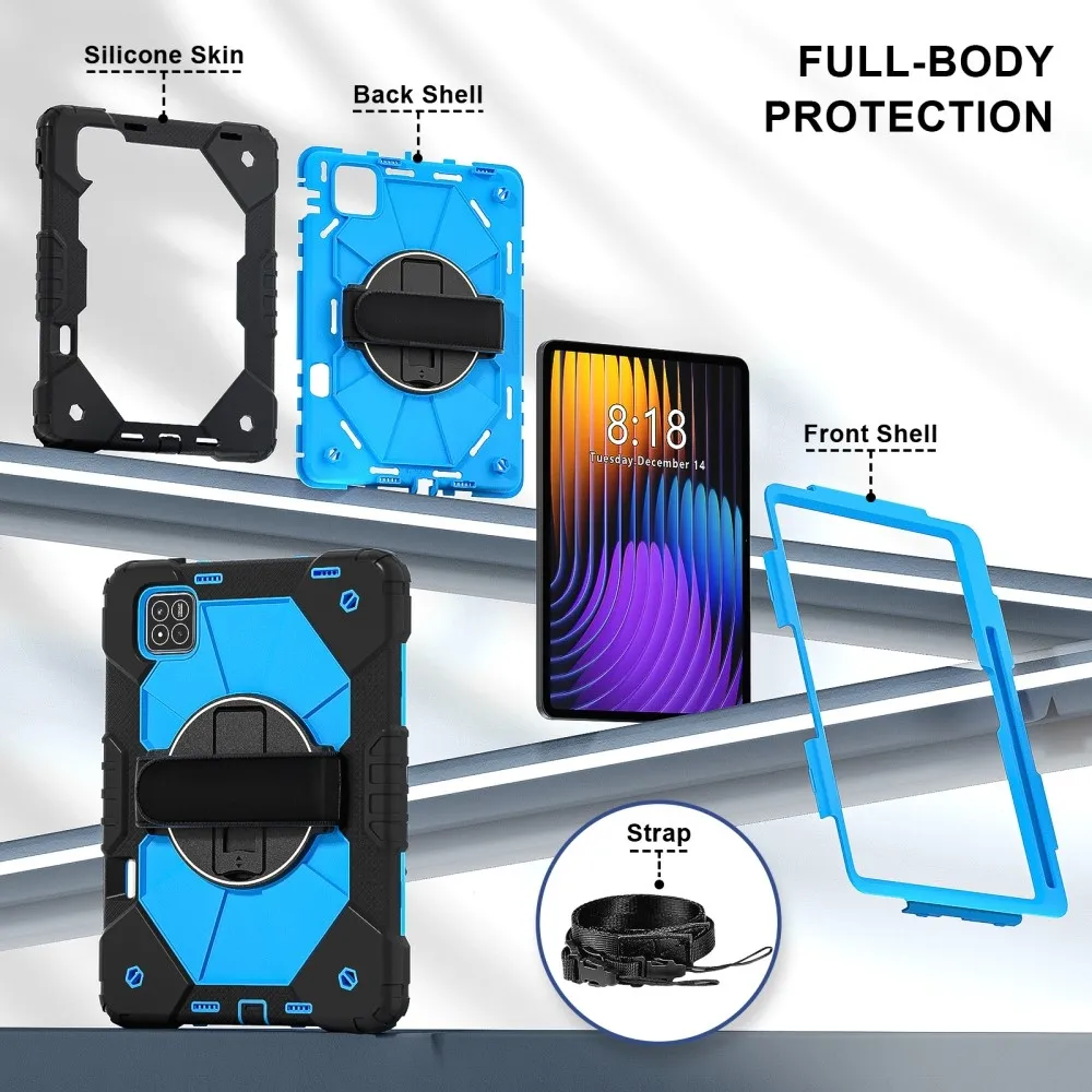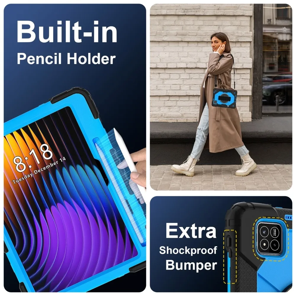 Fekete/kék tartós pántos tok kéztartóval és vállpánttal a Xiaomi Pad 7/7 Pro számára