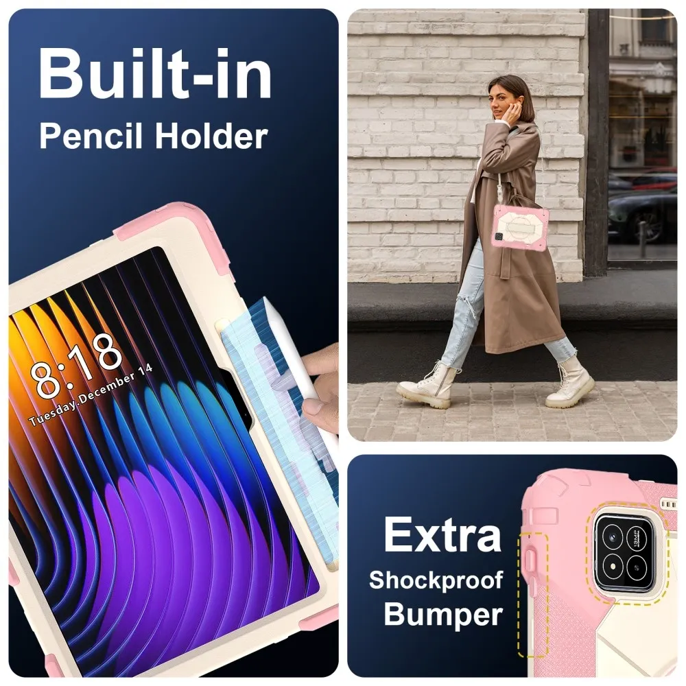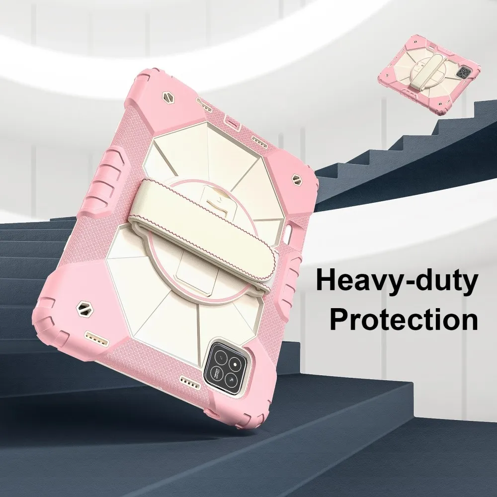 Rózsaszín és arany tartós pántos tok kéztartóval és vállpánttal Xiaomi Pad 7/7 Pro számára