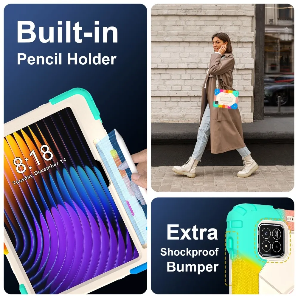 Színes, tartós pántos tok kéztartóval és vállpánttal a Xiaomi Pad 7/7 Pro készülékhez