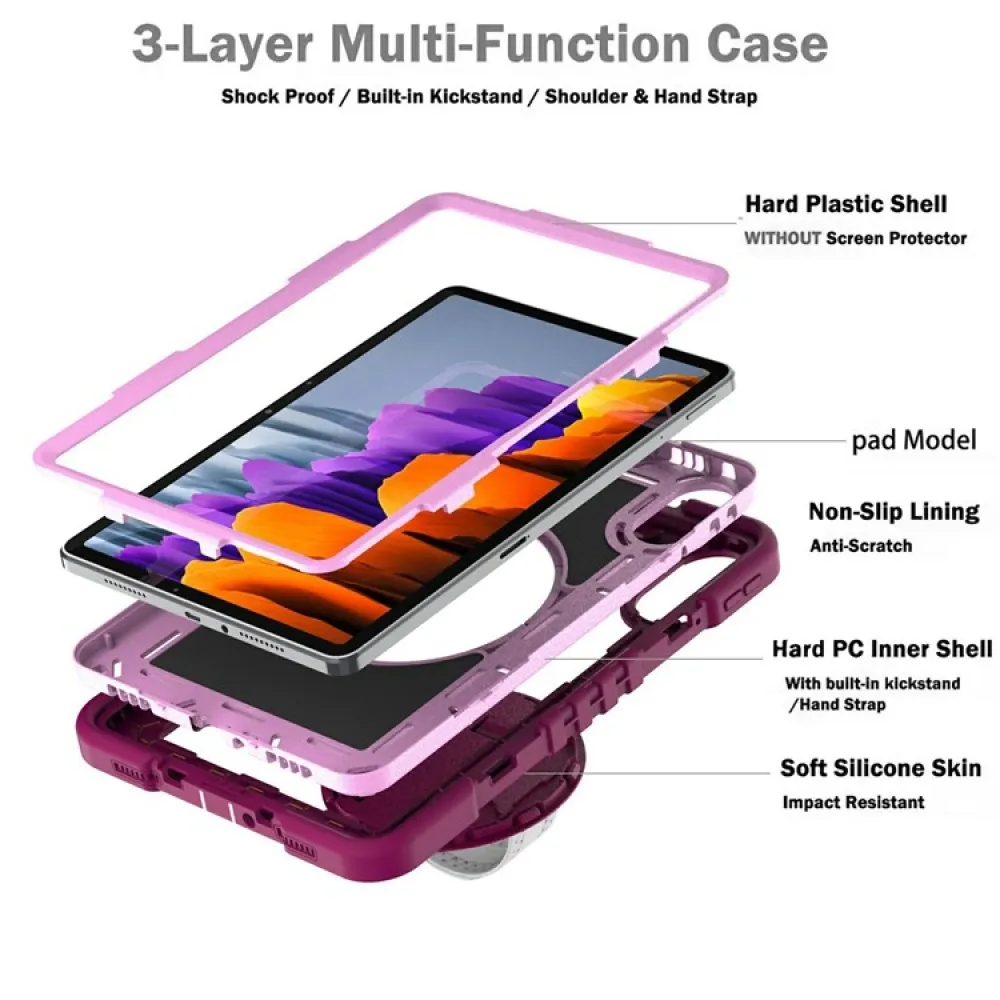 Rózsaszín/rózsaszín tartós pántos borítás kézi fogantyúval és pánttal Xiaomi Redmi Pad 2 készülékhez
