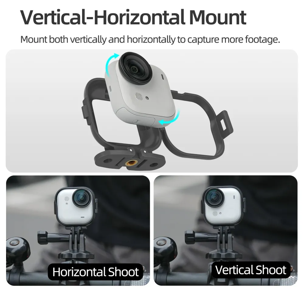 Az adapter a kamera rögzítési lehetőségeinek bővítésére szolgál, és lehetővé teszi a felvétel gyors orientációváltását bonyolult szétszerelés nélkül. A kialakítás stabil tartást biztosít a kamerának, miközben könnyű és kompakt marad az egyszerű hordozhatóság érdekében.
