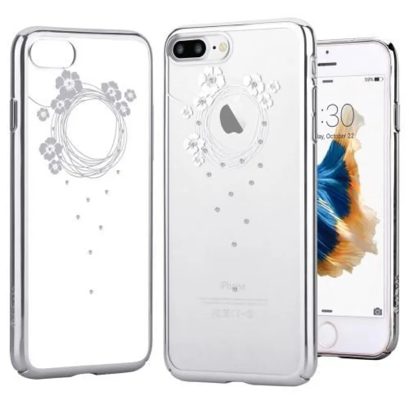 Swarovski kristályokkal díszített műanyag tok iPhone 8 Plus és 7 Plus készülékhez - ezüst színű