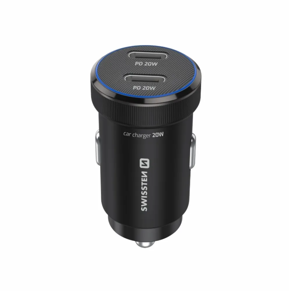 Swissten CL adapter 2x USB-C PD, 20W - fekete + USB-C / USB-C kábel, 1m