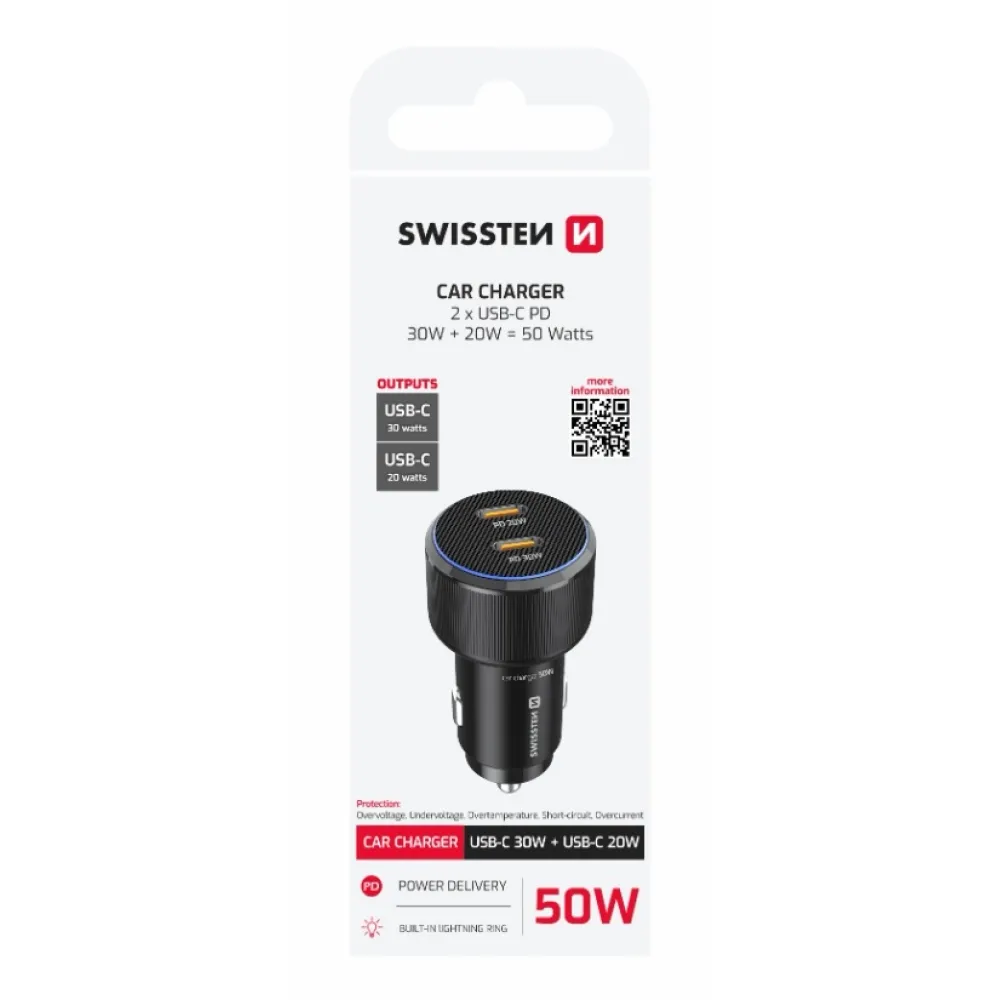 Swissten CL adapter 2x USB-C PD, 50W - fekete