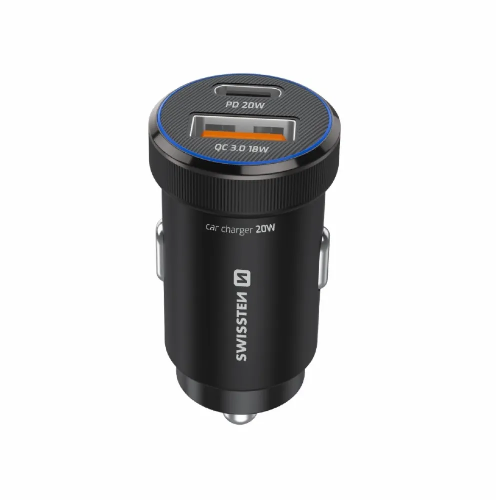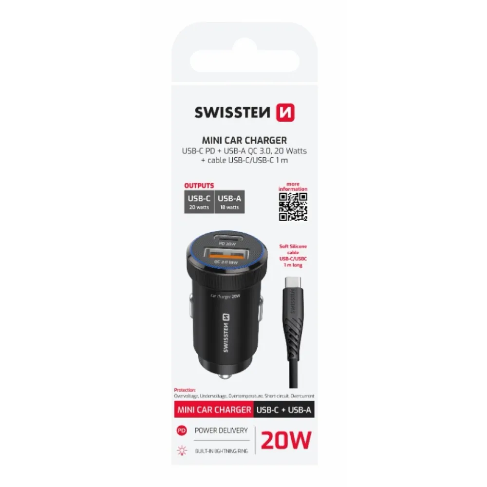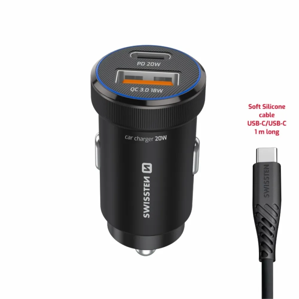 Swissten CL adapter USB-C PD + USB-A, 20W - fekete + USB-C / USB-C kábel, 1m