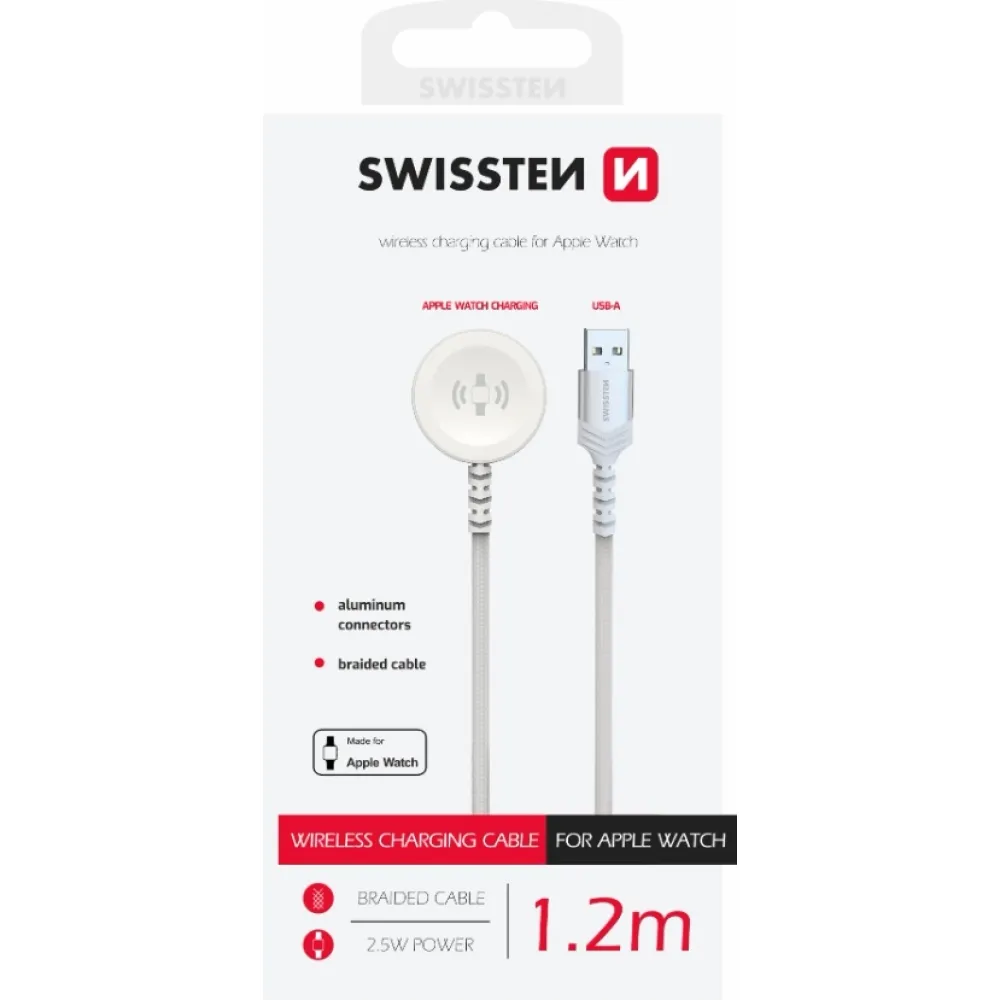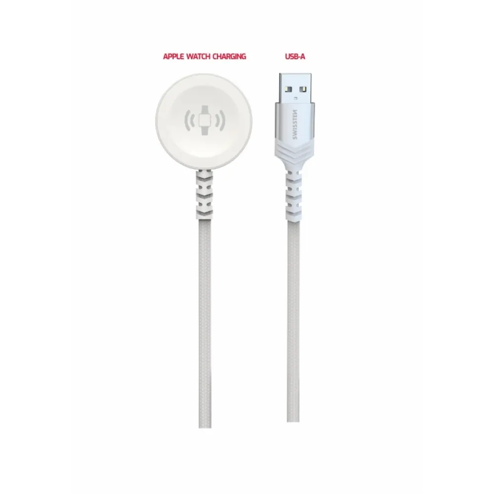 Swissten fonott fém mágneses kábel Apple Watch-hoz, USB-A 1,2 m - fehér