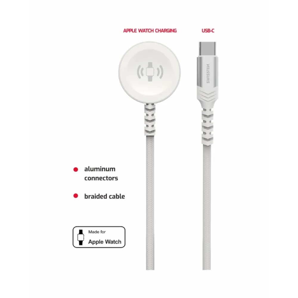 Swissten fonott fém mágneses kábel Apple Watch-hoz, USB-C 1,2 m - fehér