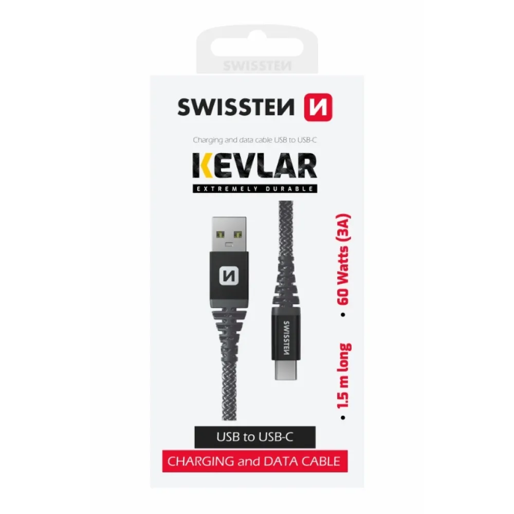 Swissten Kevlar USB/USB-C adatkábel 1,5m - antracit színű