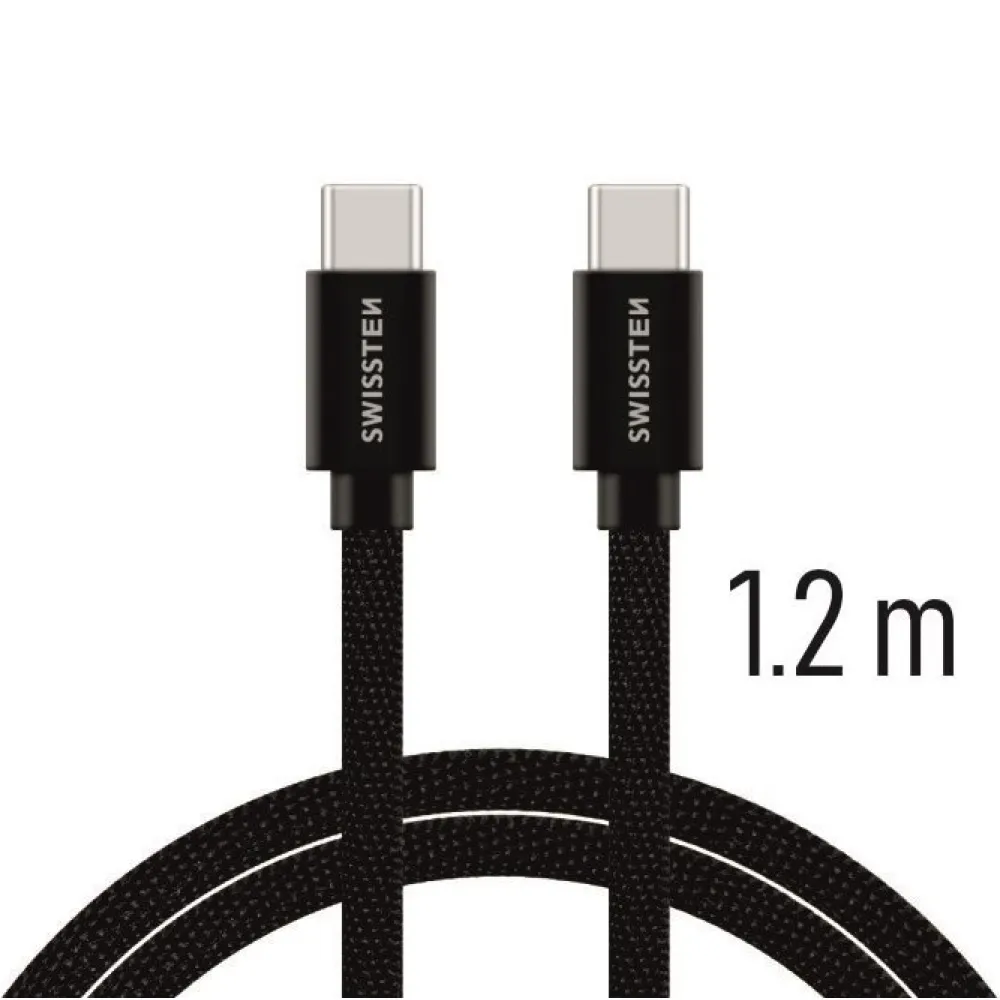 Swissten Woven USB-C/USB-C töltő és szinkronizáló kábel 1.2m - Fekete
