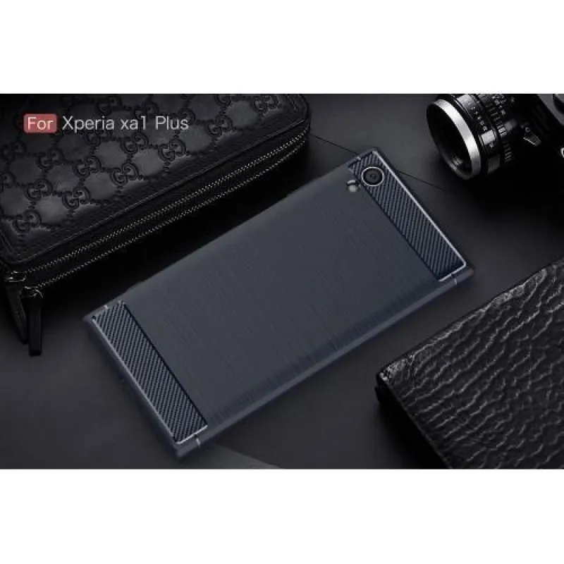 Szálas zselés tok Sony Xperia XA1 Plus készülékhez - sötétkék