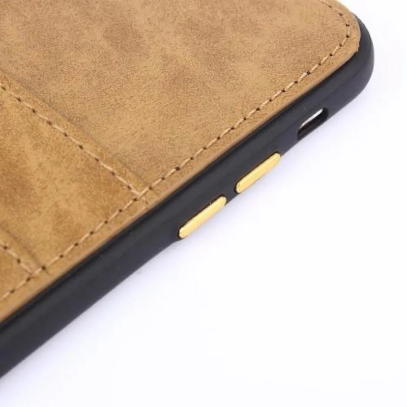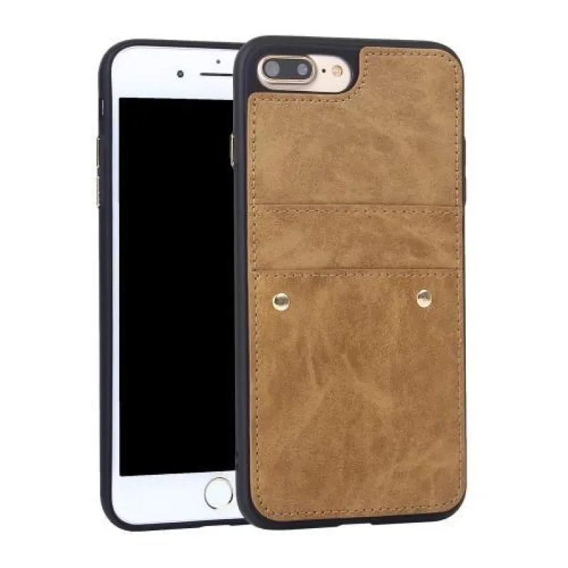 Szegecselt zselés tok PU bőr hátlappal és rekesszel iPhone 8 Plus és 7 Plus készülékhez - bézs színben