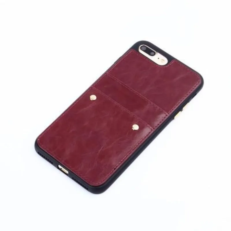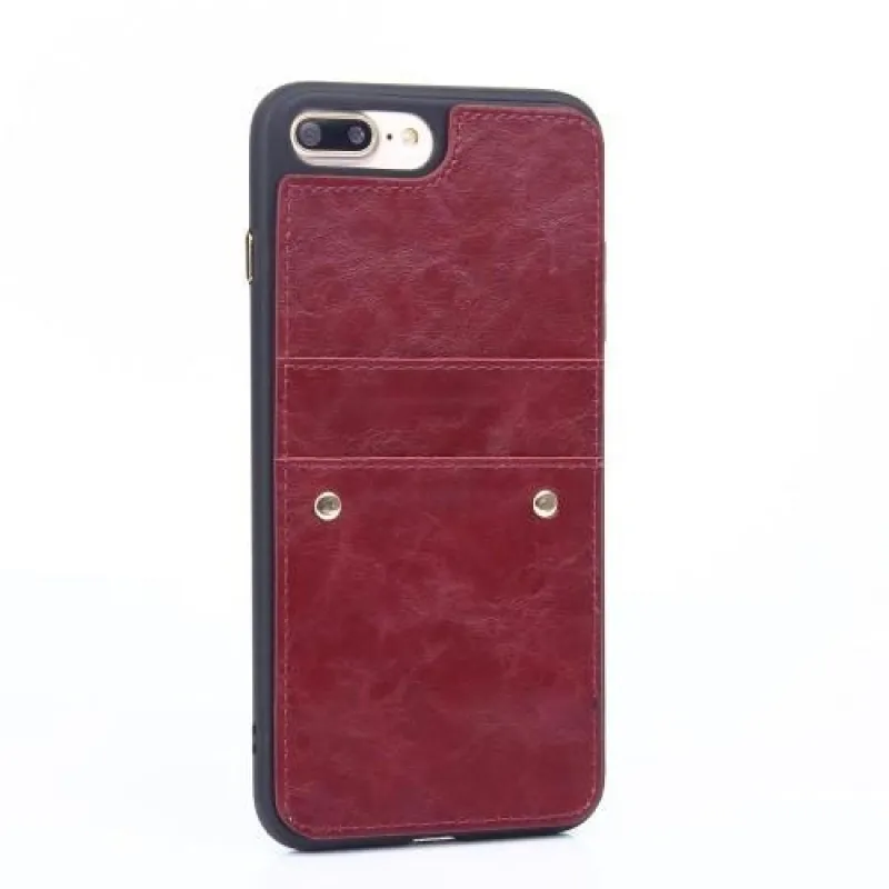 Szegecselt zselés tok PU bőr hátlappal és rekesszel iPhone 8 Plus és 7 Plus készülékhez - piros színben