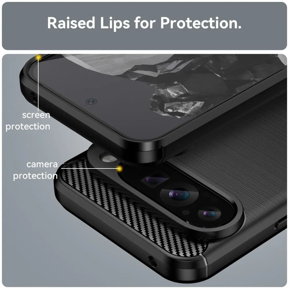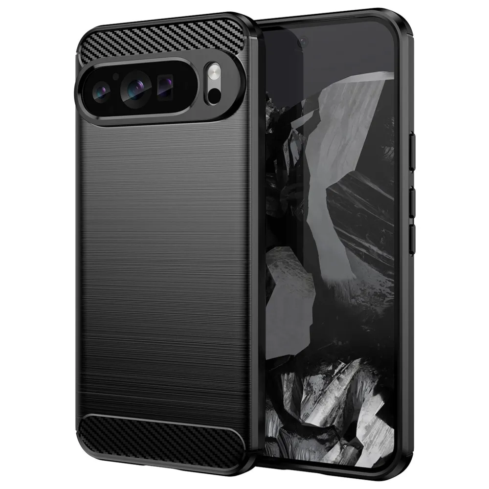 Fekete tartós zselés borítás Carbon a Google Pixel 9 Pro XL-hez