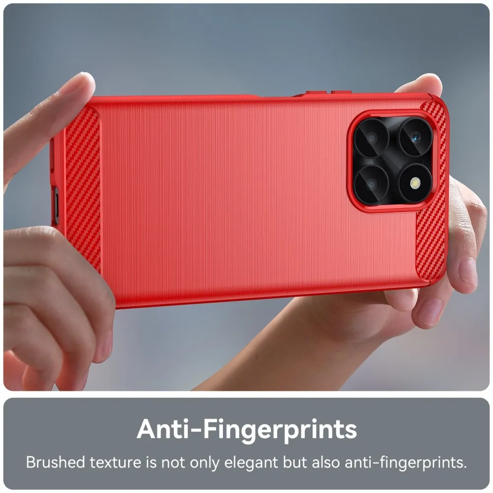A méretstabil és ütésálló TPU-ból (termoplasztikus poliuretán) készült karbonálló tok fokozott védelmet nyújt a telefon teljes kerületének és hátuljának. Könnyű, rugalmas és könnyen kezelhető. Nem csúszik a kézben, és tökéletesen tapad az Honor X6a készülékhez a teljes kerületén.