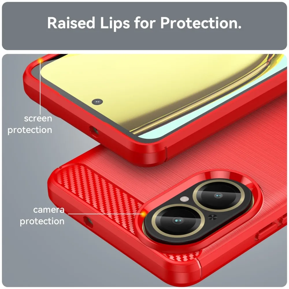 Piros tartós Carbon zselés borítás a Realme C67 mobiltelefonhoz