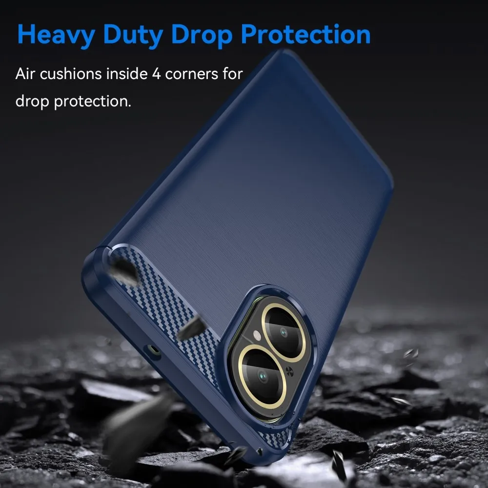 • A kék szín és a szénszálas utánzat luxus megjelenést kölcsönöz a telefonnak.