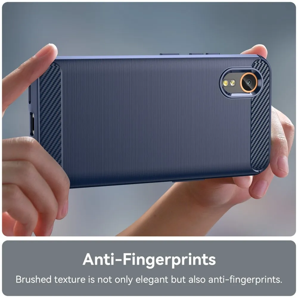 A méretstabil és ütésálló TPU-ból (termoplasztikus poliuretán) készült karbonálló tok fokozott védelmet nyújt a telefon teljes kerületének és hátuljának. Könnyű, rugalmas és könnyen kezelhető. Nem csúszik a kézben, és tökéletesen tapad az Samsung Galaxy Xcover 7 készülékhez a teljes kerületén.