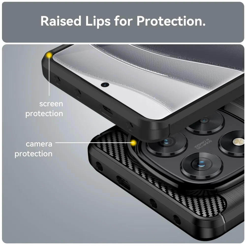 A méretstabil és ütésálló TPU-ból (termoplasztikus poliuretán) készült karbonálló tok fokozott védelmet nyújt a telefon teljes kerületének és hátuljának. Könnyű, rugalmas és könnyen kezelhető. Nem csúszik a kézben, és tökéletesen tapad az Xiaomi Redmi Note 14 Pro 5G/Poco X7 5G készülékhez a teljes kerületén.