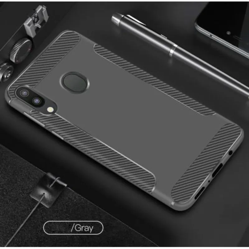 Szénszálas csúszásgátló zselés tok Samsung Galaxy M20-hoz - szürke