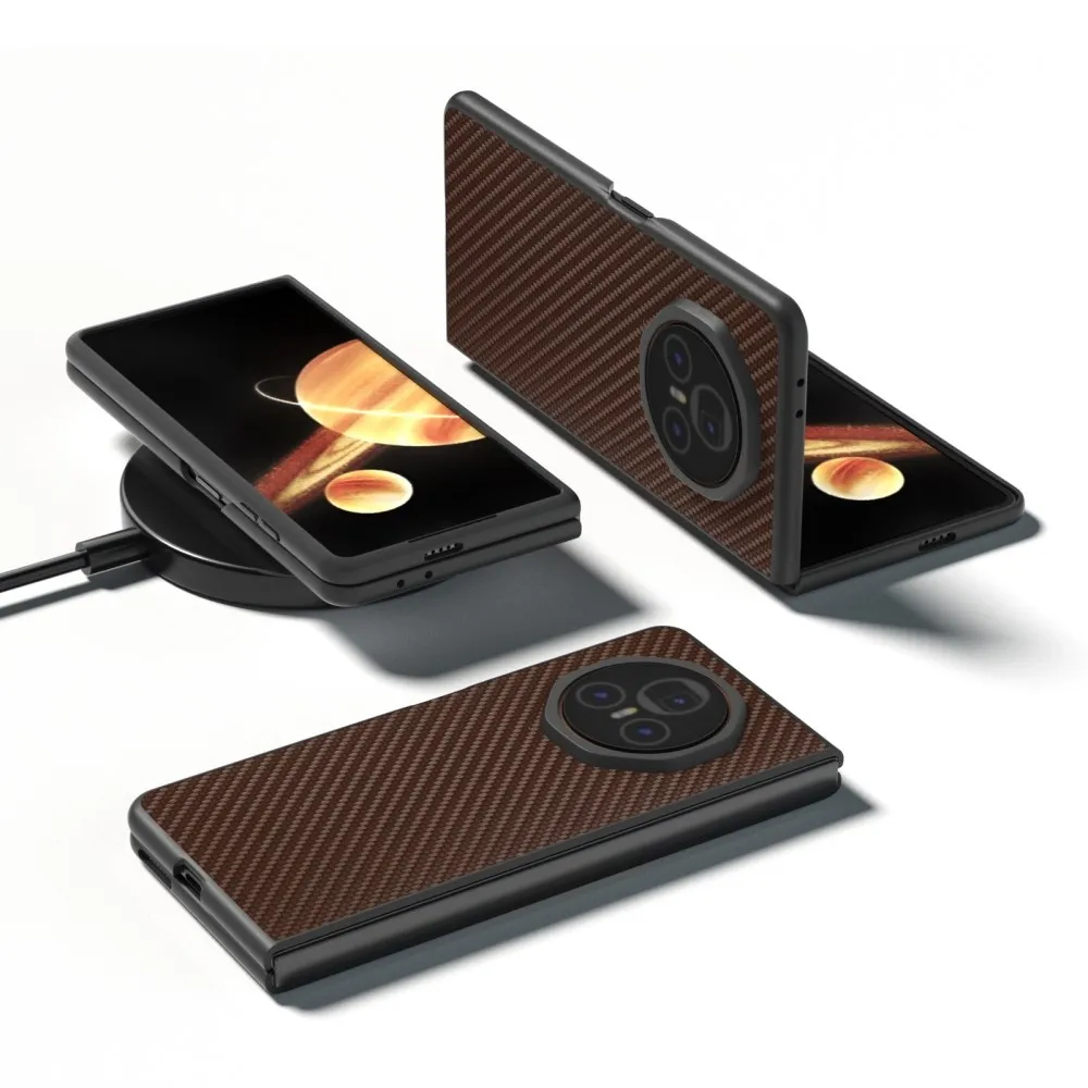 Szénszálas műanyag tok műbőrrel Honor Magic V3-hoz - barna
