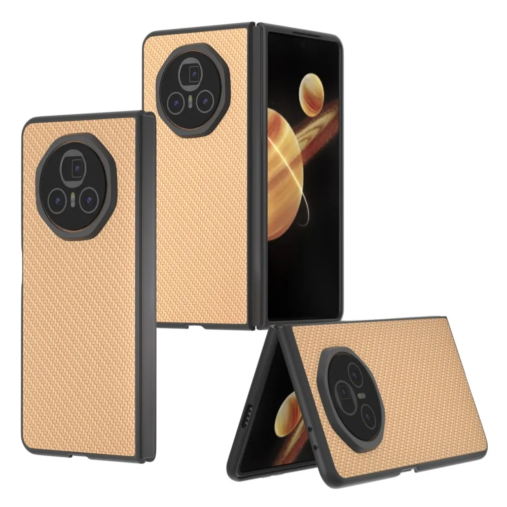 Szénszálas műanyag tok műbőrrel Honor Magic V3-hoz - sárga