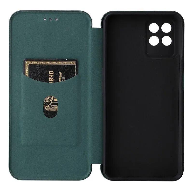Szénszálas pénztárca tok a Realme 8i készülékhez - zöld