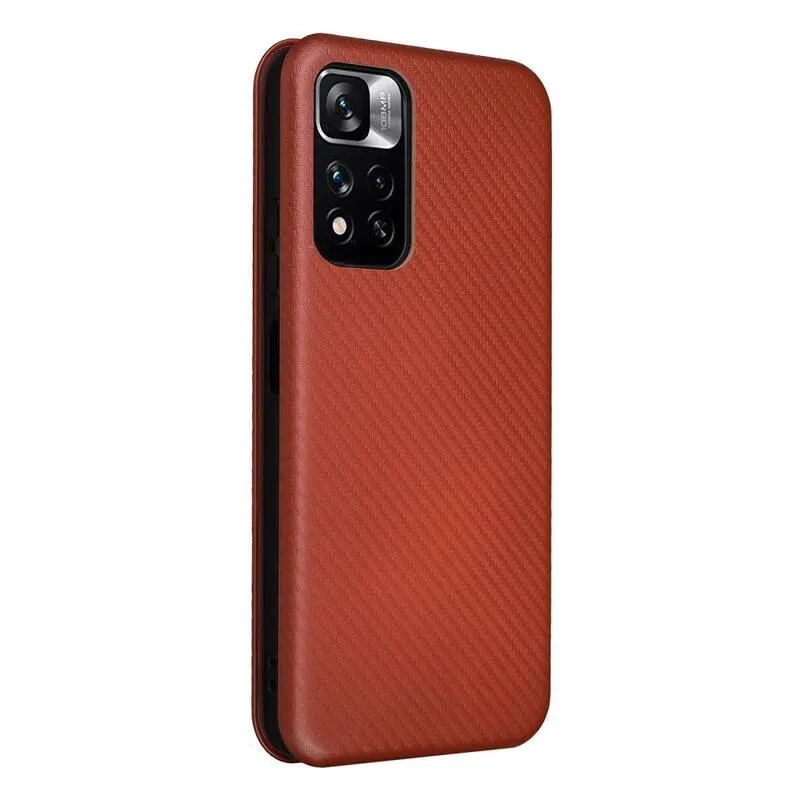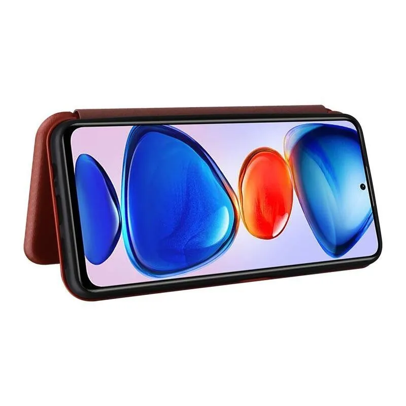 Szénszálas pénztárca tok Xiaomi Poco M4 Pro 5G/Redmi Note 11S 5G - narancssárga