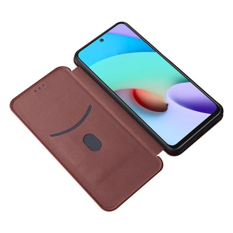 Szénszálas pénztárca tok Xiaomi Redmi Note 11 4G/Note 11S 4G - narancssárga színben