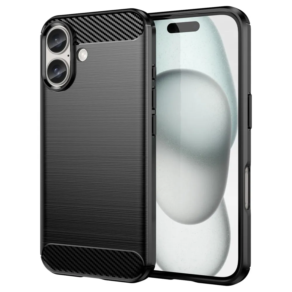 Fekete tartós zselés borítás Carbon iPhone 16 készülékhez