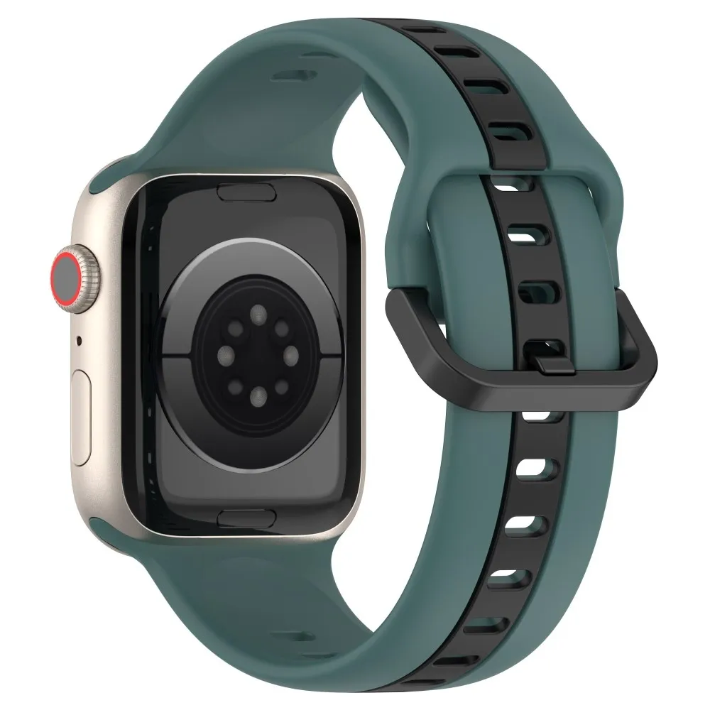 Szíj szilikon szíj Apple Watch Ultra/Ultra 2 49mm/SE/SE 2022/2023 44mm/9/8/7 45mm/6/5/4 44mm/3/2/1 42 mm-es Apple Watch Ultra/Ultra 2 órához - zöld/fekete színű