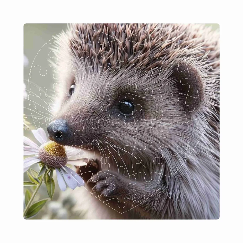 Kiváló minőségű puzzle 19x18cm-es szív alakú (76 darab) és egy sün képével.