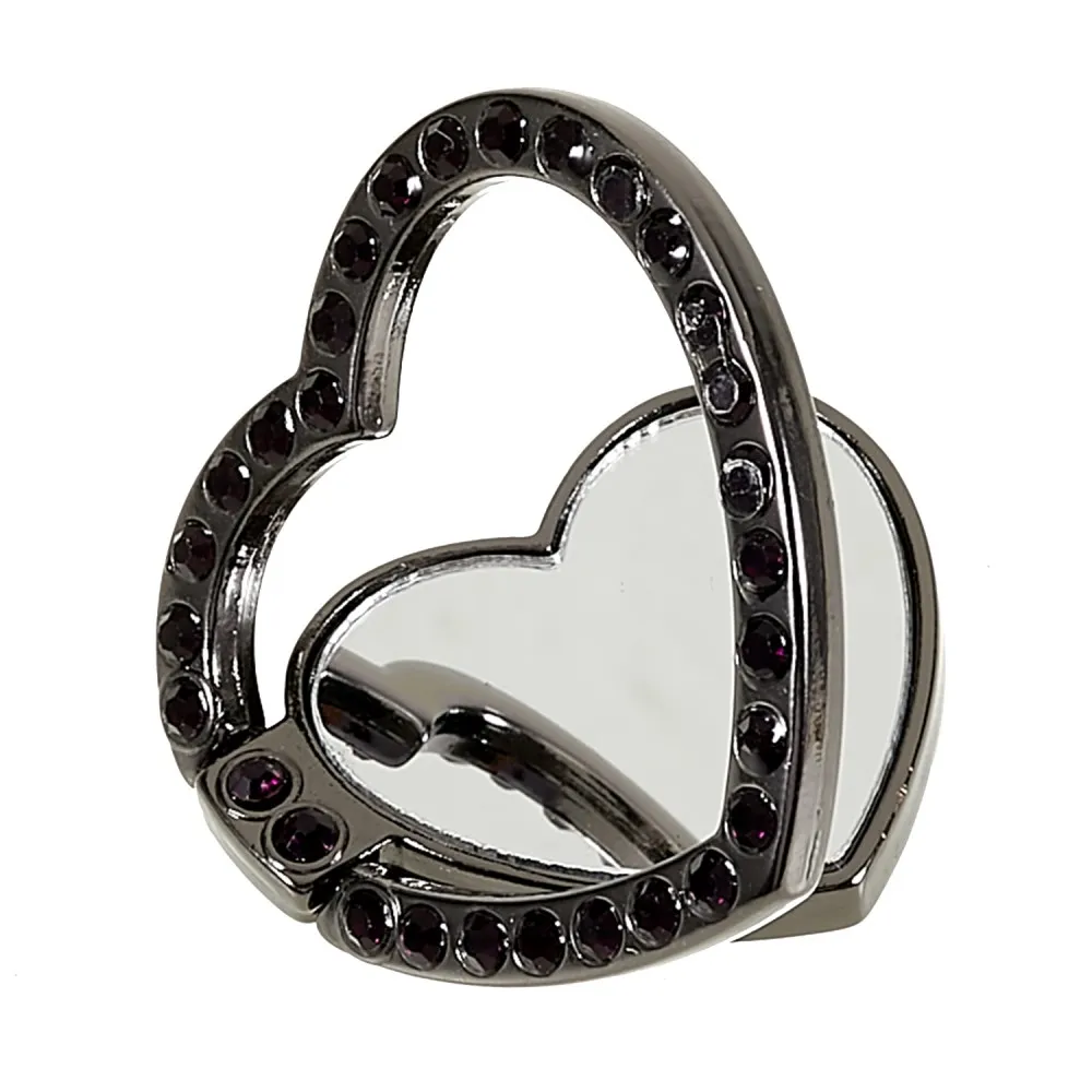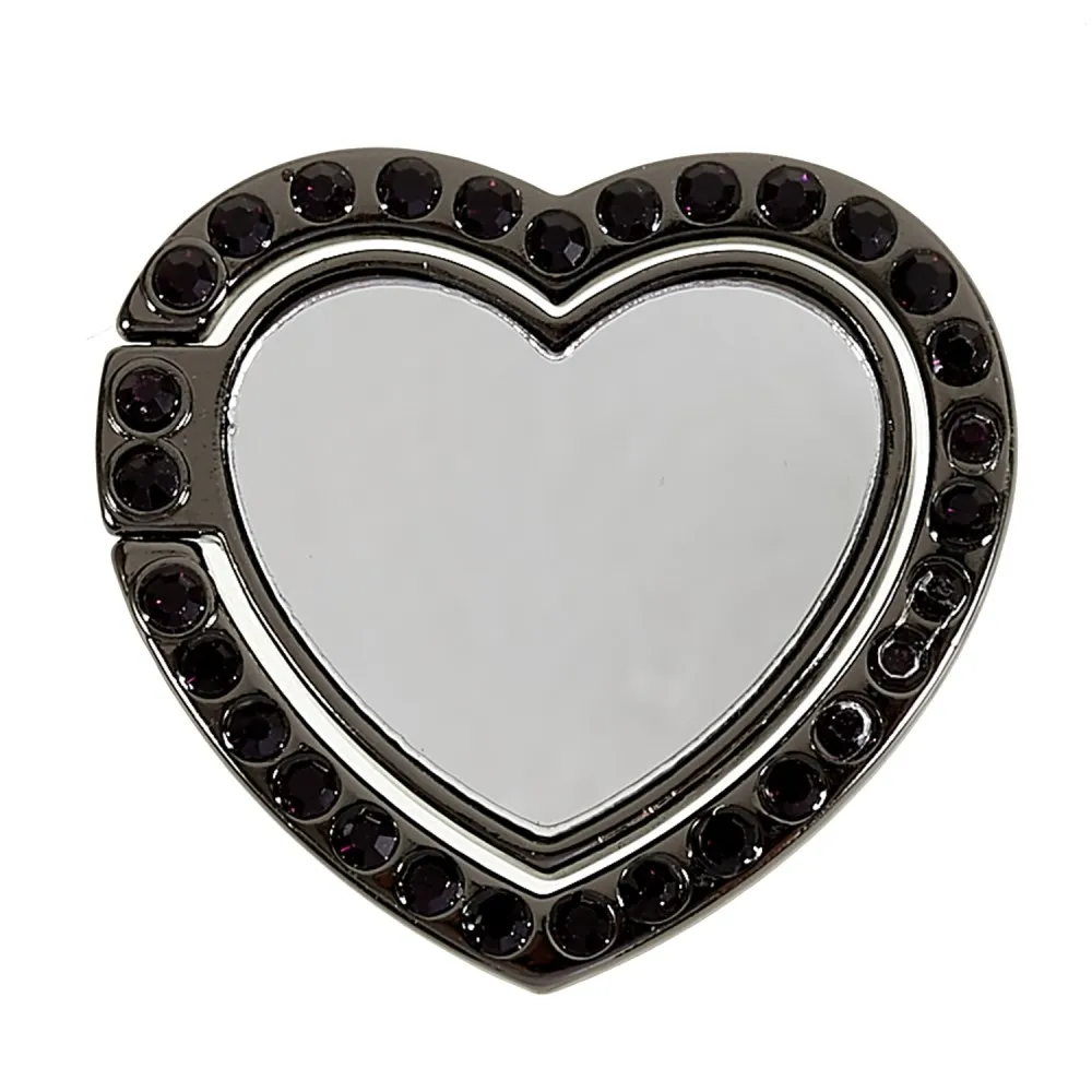 Szív tükör ujjtartó mobiltelefonhoz - fekete