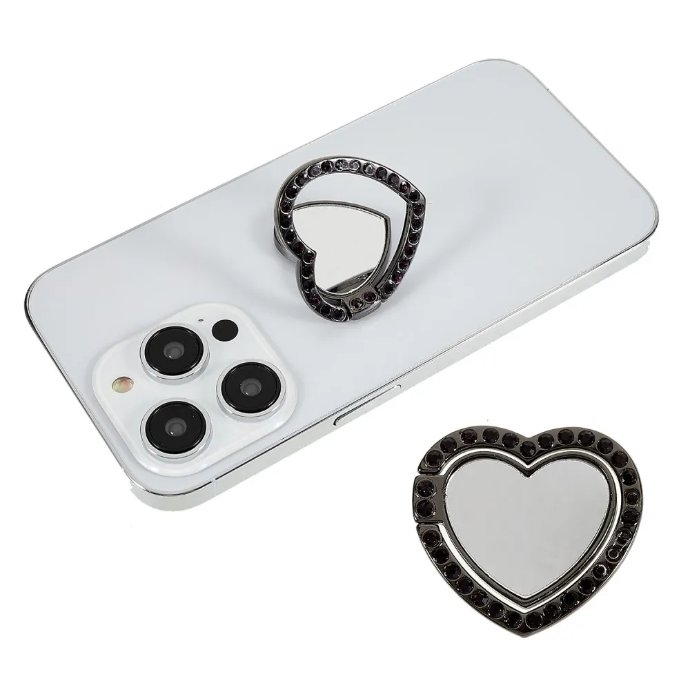Fekete tükör szív ujjtartó mobiltelefonhoz