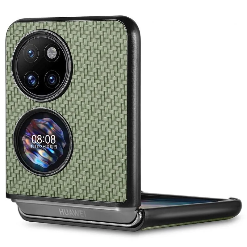Szövött, texturált műanyag borítás Huawei P50 Pocket készülékhez - zöld