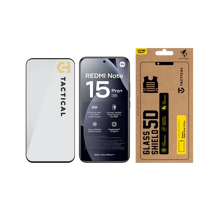 Taktikai üvegpajzs 5D üveg Xiaomi Redmi Note 15 Pro+ fekete
