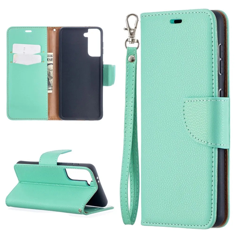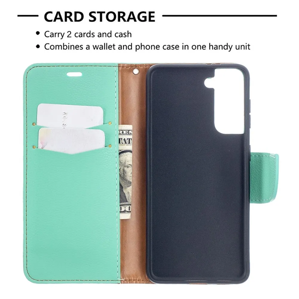 Kék-zöld pénztárca tok pénztárca Samsung Galaxy S21-hez