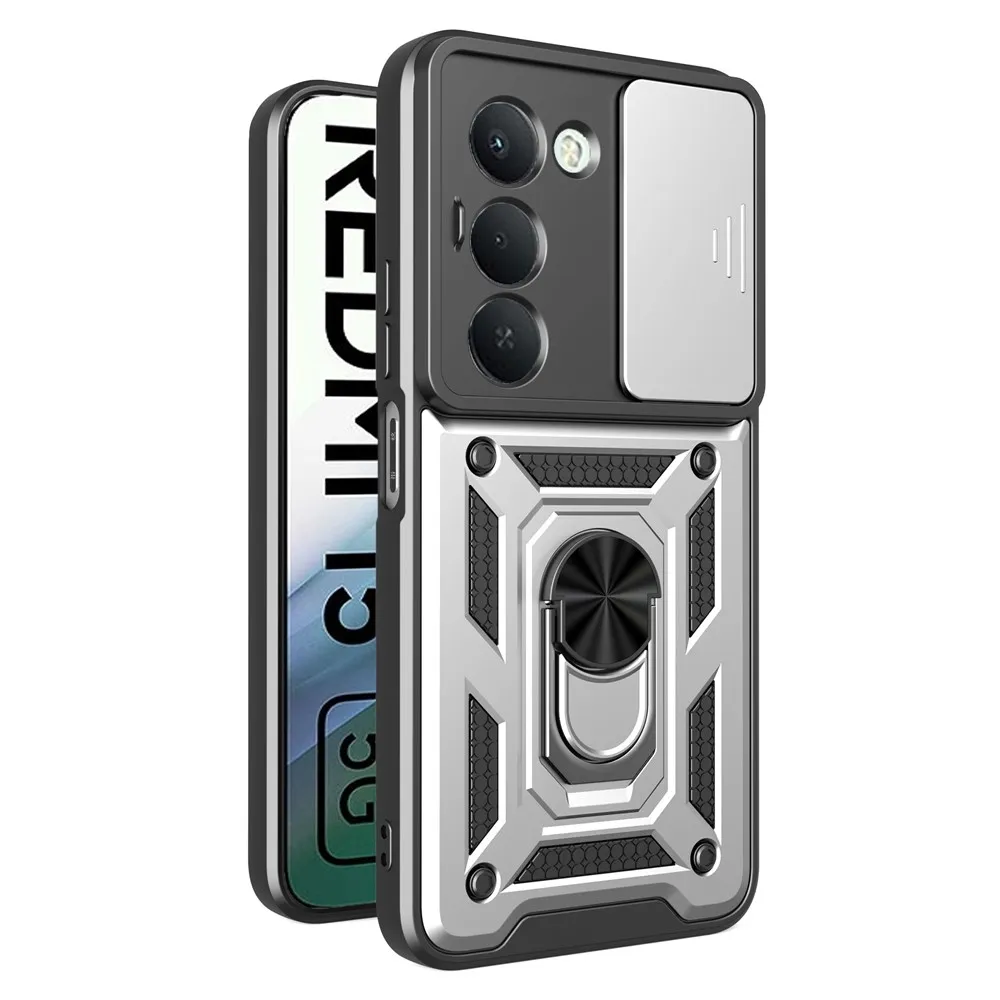 Csúsztatható ezüst tartós tok Xiaomi Redmi 15 5G (169mm) számára