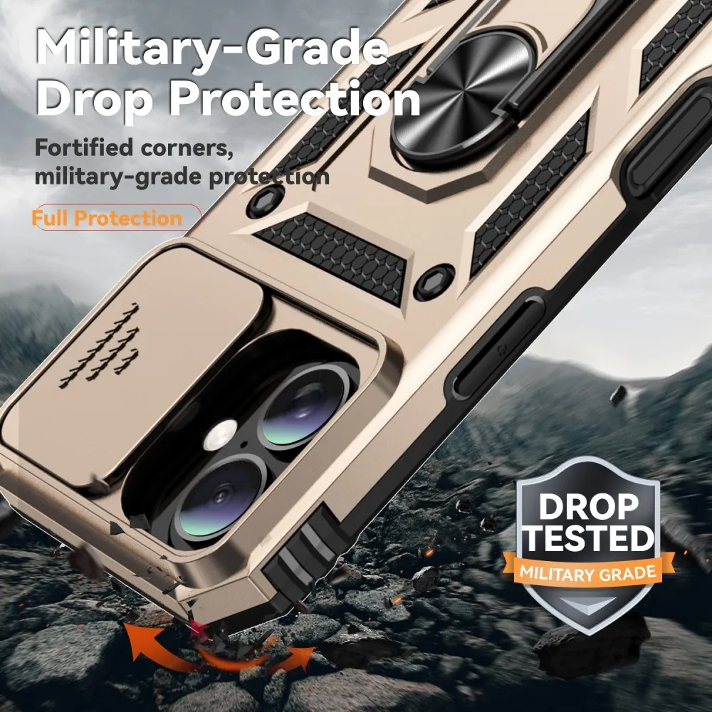Aranyszínű tartós csúszdás mobiltok iPhone 16-hoz