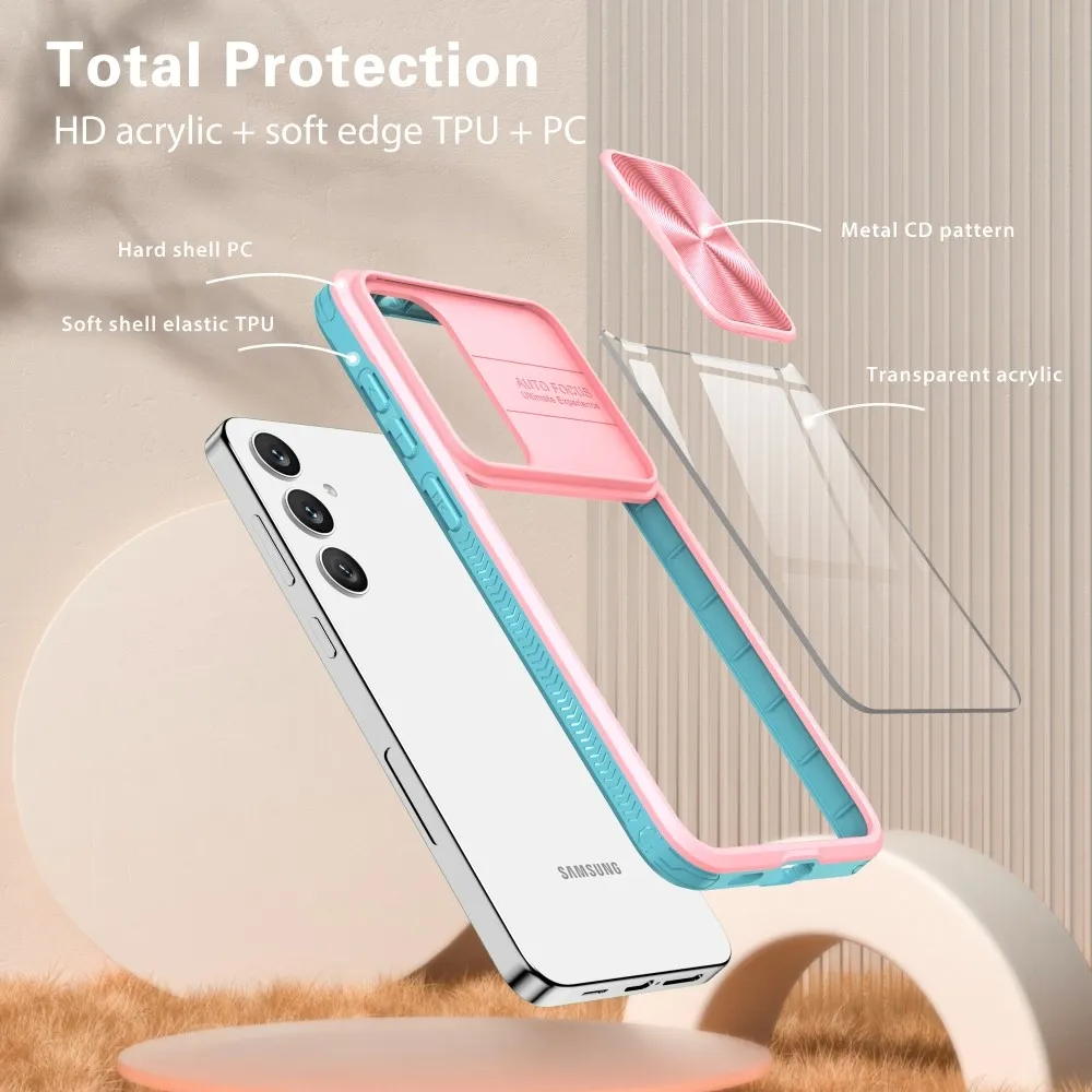 Tartós hátlapi borítás kamerafedéllel Samsung Galaxy S25+ készülékhez - rózsaszín/kék-zöld