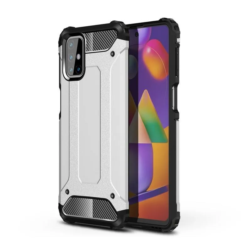 Tartós hibrid páncélborítás Samsung Galaxy M31s készülékhez - ezüst színű