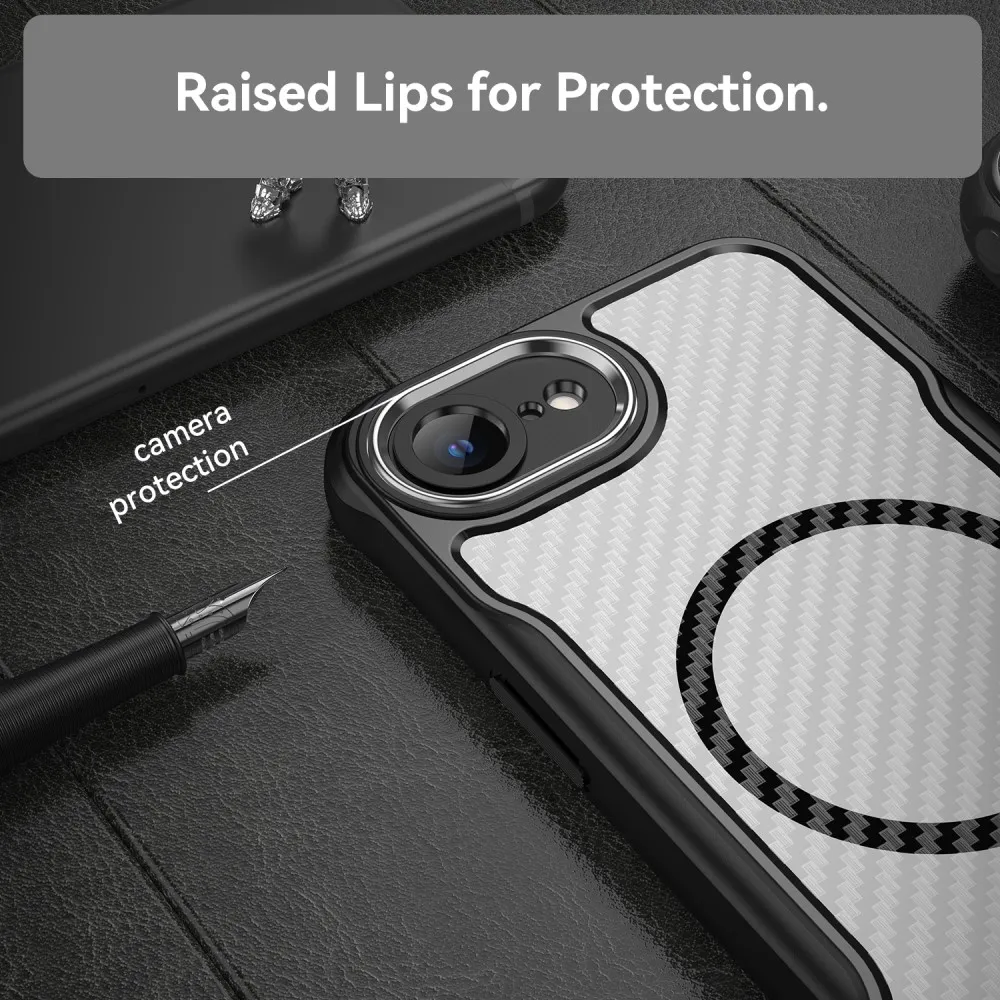 ✅Texturált, fekete színű iPhone 16e tok PC+TPU+fém kombinációból készült, amely tartós és robusztus védelmet nyújt, miközben megőrzi stílusos megjelenését
