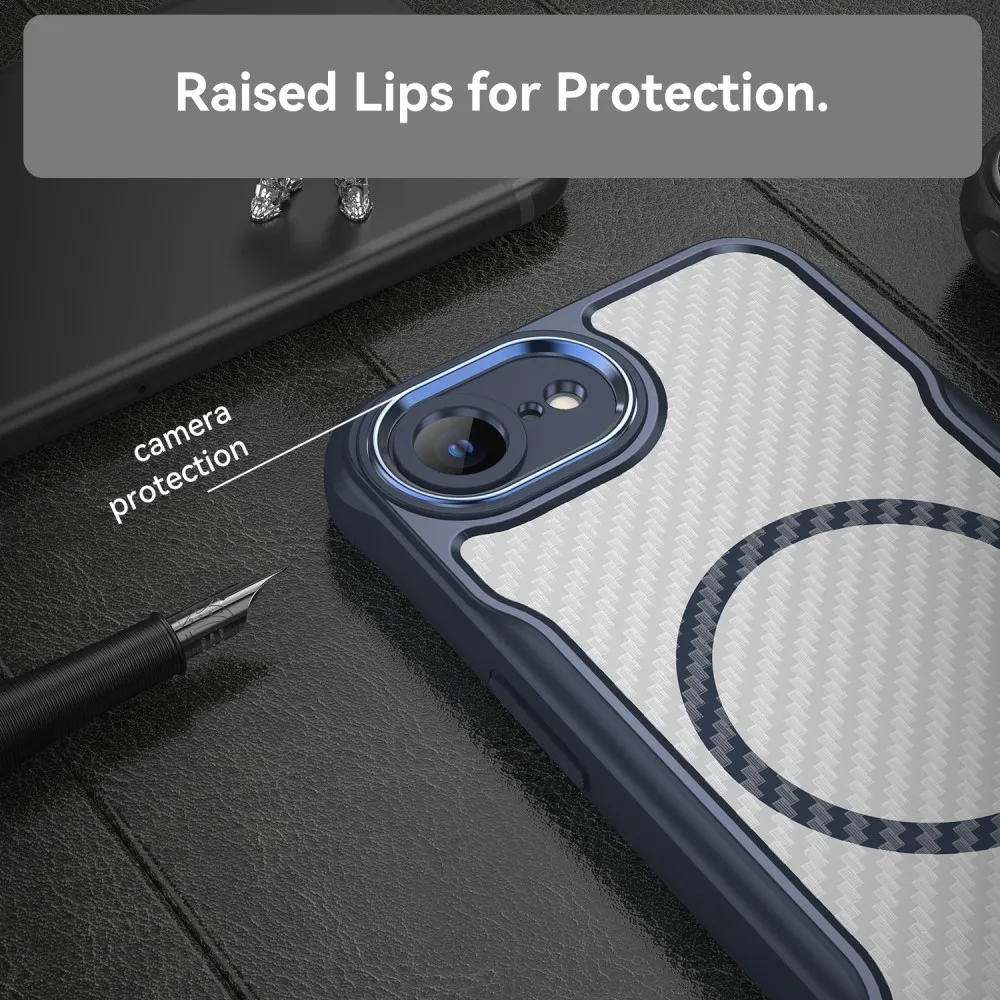 ✅Texturált, kék színű iPhone 16e tok PC+TPU+fém kombinációból készült, amely tartós és robusztus védelmet nyújt, miközben megőrzi stílusos megjelenését
