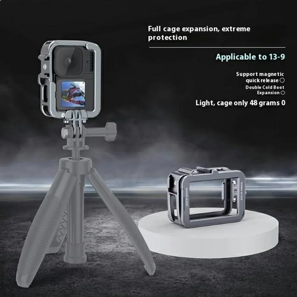 A keret lehetővé teszi a vízszintes és függőleges rögzítést is, ami ideális közösségi média tartalmak és portré formátumú videók készítéséhez. A precíz kialakítás biztosítja, hogy a kamera stabilan rögzüljön, és ne mozduljon el felvétel közben. A szerkezet segíti a hőelvezetést is, így hosszabb felvétel esetén is stabil teljesítményt nyújt.